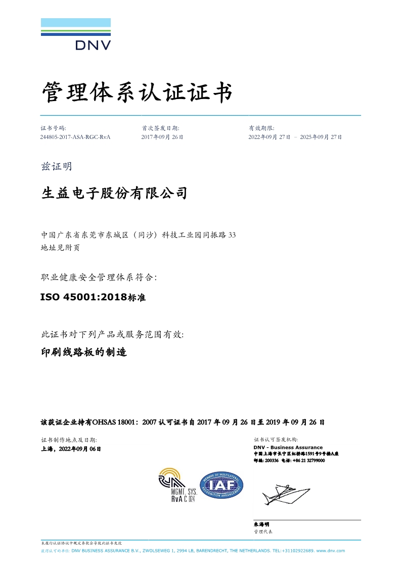 ISO 45001(生益電子)