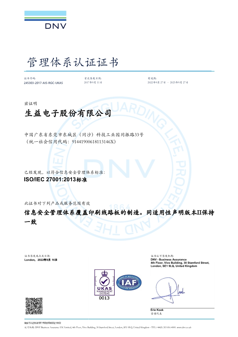 ISO/IEC 27001(生益電子)